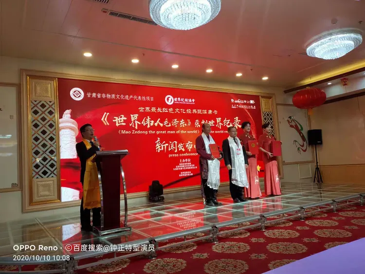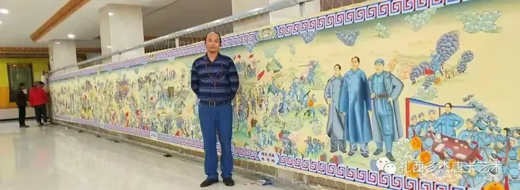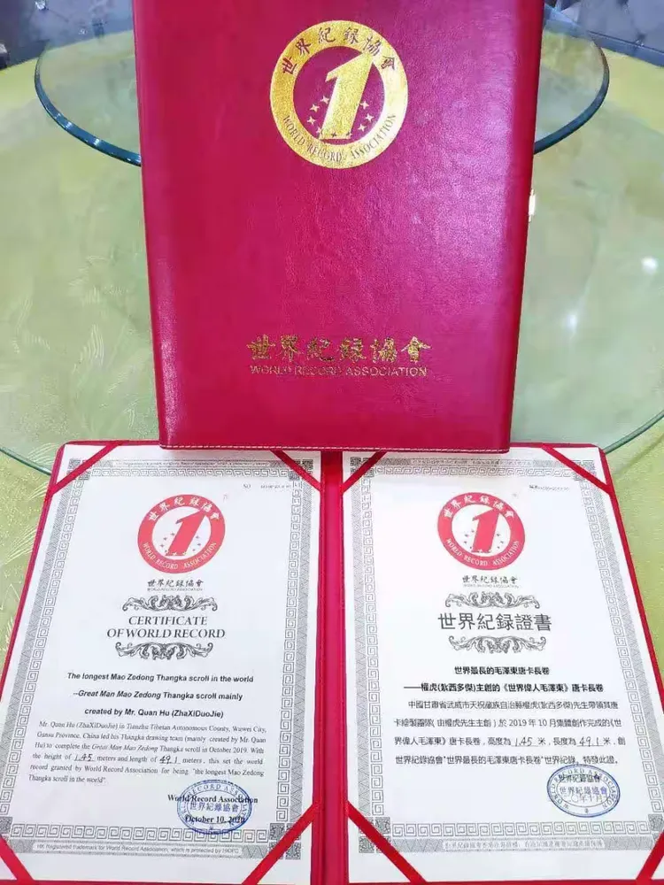 扎西多杰所创的这幅巨作2020年10月10日借国庆之际荣创世界上最长的红色文化唐卡破《世界记录》