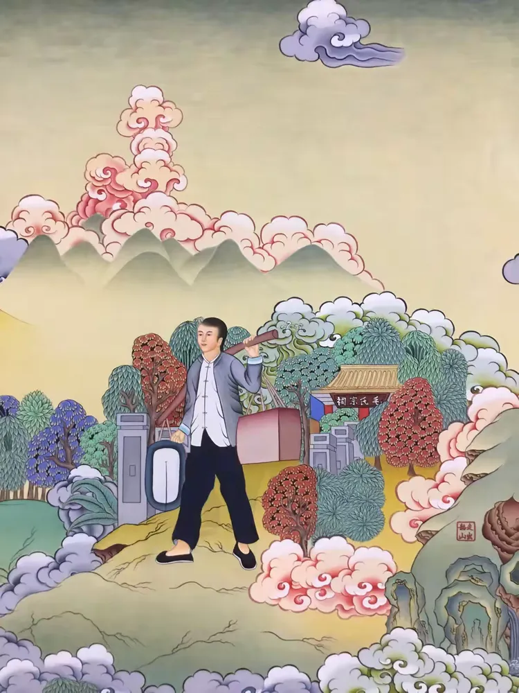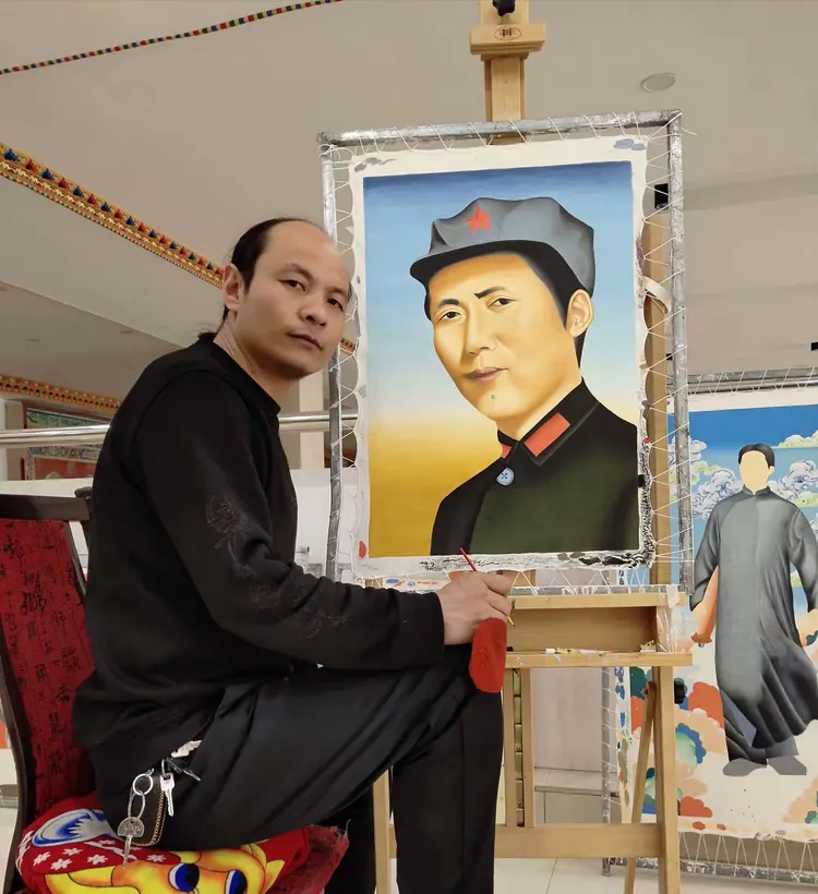 扎西多杰绘制世界伟人毛泽东巨幅红色文化唐卡