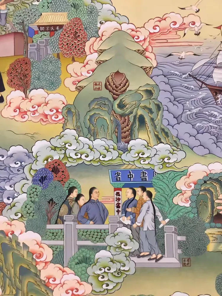 也正因为藏族同胞对毛主席有这么深的感情,才会创作出这幅旷世珍宝般的《世界伟人---毛泽东》的唐卡,下图为这幅唐卡的局部这幅长达49.1米的唐卡,里面涉及到一万两千多个人物,表现了毛主席在中华历史中丰功伟绩的方方面面,所以,这幅唐卡,不仅仅是艺术上的瑰宝,也是人类历史和思想上瑰宝。